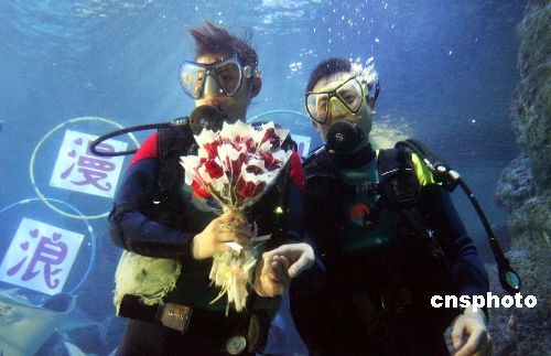 圖:福州情侶情人節(jié)體驗“海底”浪漫(2)