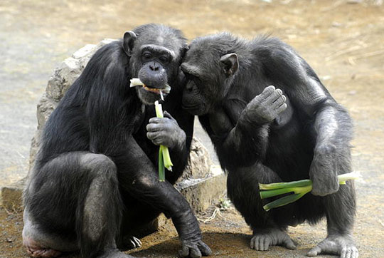 2月16日,在日本東京的一家動物園里,幾只黑猩猩正在吃大蔥。該動物園讓黑猩猩吃大蔥,為的是防止它們冬天患感冒,保持身體健康,這個方法已經(jīng)采用了4年。