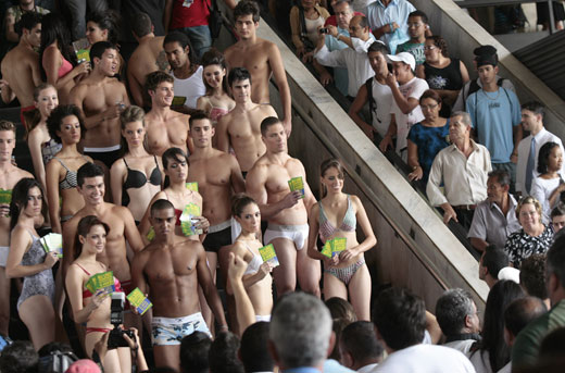 巴西利亞的公交車(chē)站,模特身著性感內(nèi)衣慶祝內(nèi)衣節(jié)開(kāi)幕。