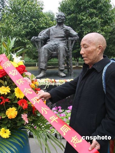 2月19日,廣安區(qū)協(xié)興鎮(zhèn)牌坊村村民在為小平銅像獻花以示懷念。當日,是世紀偉人鄧小平逝世12周年紀念日,四川省廣安市和來自全國各地的各界人士紛紛自發(fā)前來為鄧小平銅像獻花以示深切懷念。中新社發(fā) 杜修戰(zhàn) 攝