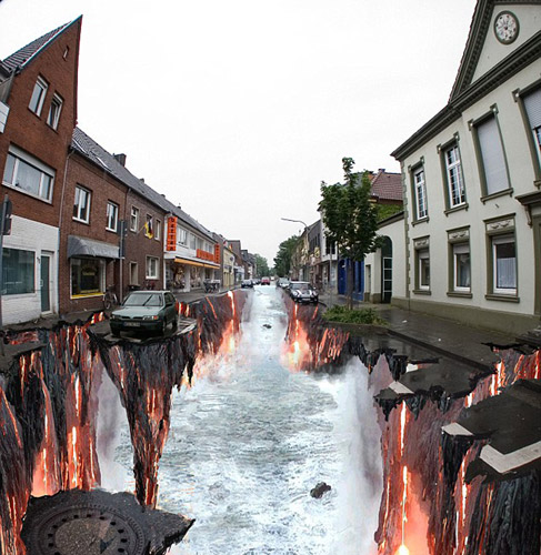 組圖:藝術(shù)家街頭大玩3D 街道頓成"深淵" (2)