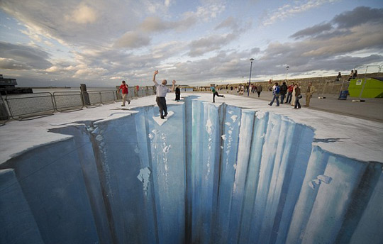 組圖:藝術(shù)家街頭大玩3D 街道頓成"深淵" (3)