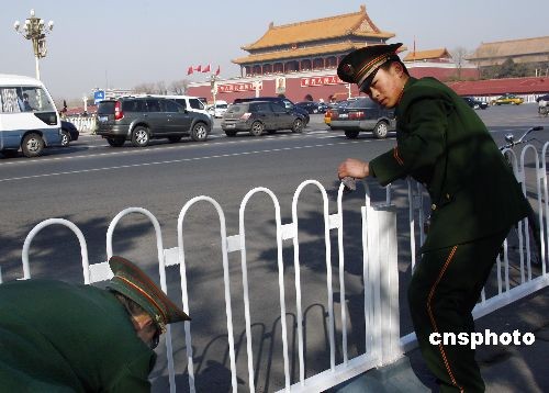 2月27日,全國(guó)“兩會(huì)”即將召開(kāi),北京天安門廣場(chǎng)進(jìn)行全面清潔整理工作,以迎接“兩會(huì)”開(kāi)幕。中新社發(fā) 鄭雄增 攝