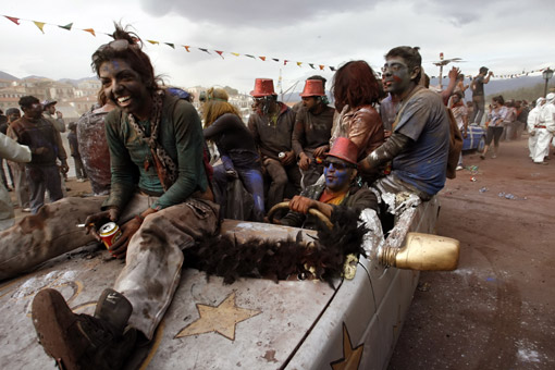3月2日,人們?cè)谙ED雅典西北小城加拉希迪的街道上用加了各種天然顏料的面粉互相投撒,表達(dá)祝福。