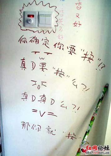 “我十分無語。”在看了女生涂鴉把宿舍惡搞之后,網(wǎng)友“泥巴”不解竟然還有那么多人來叫好!“在放假前夕,把學(xué)校搞成垃圾場一樣,被罰款了不說,校方得重新粉刷墻壁不說,作為大學(xué)生的自身素質(zhì)也該遭受到質(zhì)疑了!”