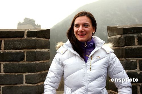 圖:撐桿跳女皇伊辛巴耶娃游覽中國長城
