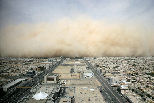 3月10日,沙特阿拉伯首都利雅得遭遇沙塵暴天氣,到處都是滾滾黃塵。沙特氣象部門稱,這次沙塵暴的強(qiáng)度達(dá)到了20年來的頂峰。