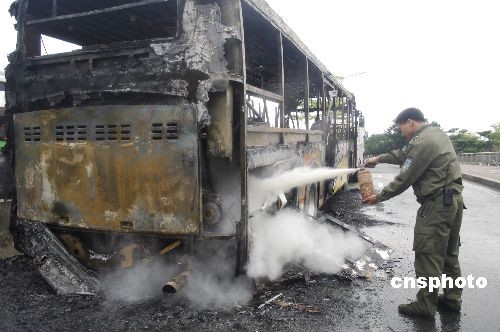 3月10日上午,廣東深圳一輛公交車在深南大道向東行至園博園站前時突然起火,大火燒了近半個小才被熄滅,整輛車被燒的只?蚣堋K臆嚿铣丝图皶r逃脫,未造成人員傷亡。據(jù)初步了解,大火由于線路短路引起,具體原因有待進(jìn)一步的調(diào)查。