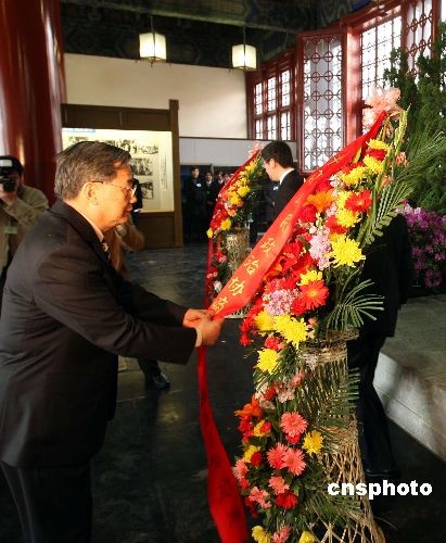 全國政協(xié)副主席李金華代表全國政協(xié)向?qū)O中山先生像敬獻(xiàn)花籃。中新社發(fā) 任海霞 攝