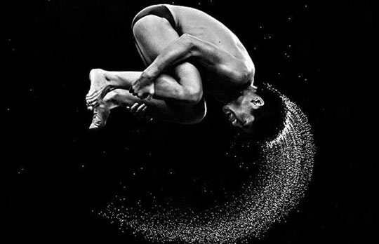 男子10米跳臺跳水:2008年8月,一名運動員在北京奧運會上參加男子10米跳臺跳水。(體育攝影一等獎)