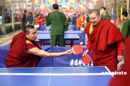 圖:北京雍和宮喇嘛揮拍打乒乓