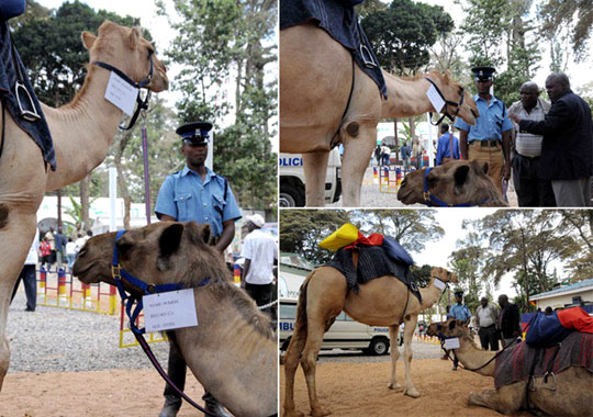 肯尼亞500多頭駱駝為警方工作?夏醽喚皆谑锥純(nèi)羅畢舉辦活動邀請市民參觀警營和警用設(shè)備,其中警用駱駝作為肯尼亞警方的特殊成員也與市民見面。目前約有500多頭駱駝為肯尼亞警方工作,它們都有自己的名字和專門看護人員,在肯尼亞北部的沙漠和半沙漠地帶發(fā)揮著重要作用。