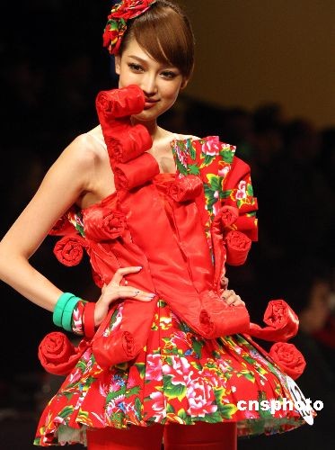3月24日,中國(guó)國(guó)際時(shí)裝周(09/10秋冬系列)在北京隆重開(kāi)幕,本屆時(shí)裝周將在D.PARK北京會(huì)所、北京飯店等主場(chǎng)地舉辦為期一周的專(zhuān)場(chǎng)發(fā)布、專(zhuān)項(xiàng)大賽、專(zhuān)題論壇等專(zhuān)業(yè)活動(dòng)近40項(xiàng),時(shí)裝周將期間將有來(lái)自國(guó)內(nèi)外的近20個(gè)知名品牌舉辦流行趨勢(shì)發(fā)布。圖為在開(kāi)幕式上舉行“漢帛獎(jiǎng)”第17屆中國(guó)國(guó)際青年設(shè)計(jì)師時(shí)裝大賽作品展示。中新社發(fā) 錢(qián)興強(qiáng) 攝