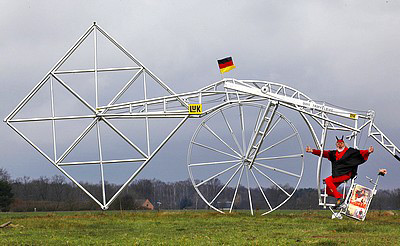 迪迪·森夫特騎行他制造的四邊形自行車。