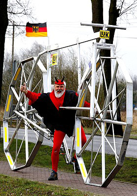 迪迪·森夫特和他制造的十邊形輪子的自行車。