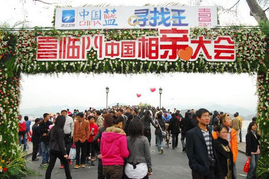 2009年3月29日,中國(guó)國(guó)內(nèi)史上規(guī)模最大的相親會(huì)在杭州西湖白堤上舉行。約8萬(wàn)名來(lái)自全國(guó)各地的未婚男女及其父母親友等進(jìn)入近2公里長(zhǎng)的相親大會(huì)現(xiàn)場(chǎng),在萬(wàn)人相親快樂(lè)牽手、“我要相親”真情告白、公益紅娘“緣”搜索、八分鐘愛(ài)情速配、愛(ài)情大沖關(guān)、“比武”招親等活動(dòng)環(huán)節(jié)中找尋自己魂?duì)繅?mèng)縈的另一半。