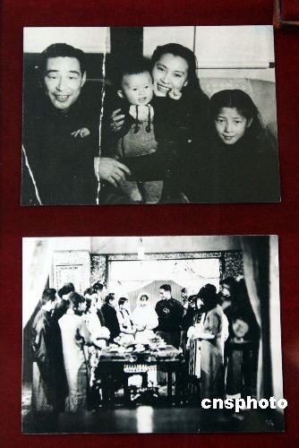 4月2日,上海福壽園“祭先烈、敬先賢、憶先人”清明月紀念展開幕,百余位建國英雄、名人精英、藝術(shù)大師的生平資料和實物史料亮相。圖為上世紀三十年代“電影皇帝”金焰與著名電影藝術(shù)家秦怡的結(jié)婚場景照(下圖)以及他們夫婦與孩子的合影(上圖)首次公開展覽。金焰,1910年出生于韓國漢城,代表作品《風流劍客》、《野草閑花》、《一剪梅》等。1948年金焰與秦怡結(jié)婚。1983年金焰離開人世。 中新社發(fā) 潘索菲 攝