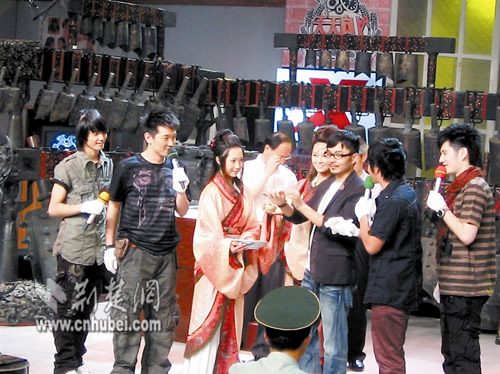 19日,在湖北出土的六件重量級(jí)文物——越王勾踐劍、曾侯乙編鐘以及雙耳金杯等,一齊亮相湖南衛(wèi)視的熱播欄目《天天向上》的錄播現(xiàn)場。汪涵、歐弟、田源、錢楓和韓國明星小五,以其一貫的幽默、活潑的主持風(fēng)格,把沉重靜謐的文物活靈活現(xiàn)地推介給了電視觀眾。