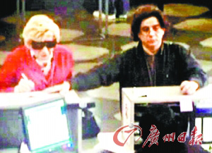 化裝成母親模樣的男子(左),與假扮其“侄子”的同伙(右)。