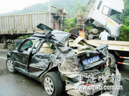 “我看到前面的車時,已來不及剎車了!21日下午1時,成都的郭先生駕駛牌照為“川U0195”的加長貨車往成都方向行駛,此時,天下著傾盆大雨,雨刮剛刮過,擋風玻璃又被大雨打濕,視線模糊。車行至成渝高速路永川段出城方向63公里處,剛轉(zhuǎn)過一個彎道,前面一排堵塞的車輛突然進入他的視線。