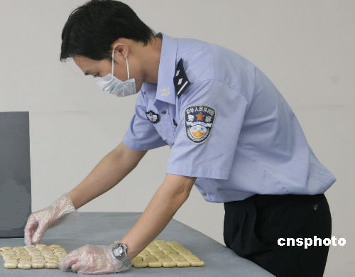 近期,廣州海關(guān)連續(xù)查獲多起毒品走私案件。從九月二十五日至十月九日,廣州海關(guān)連續(xù)查獲14宗毒品走私案,抓獲十五名涉案嫌疑人,僅人體藏匿海洛因走私入境案就達(dá)九宗。其中一人毒品滯留體內(nèi)十九天,另一人體內(nèi)藏毒一千九百多克,時間之長、重量之多,在廣州海關(guān)緝私局偵辦的人體藏毒走私案件中均屬前所未有。中新社發(fā) 陳國華 攝