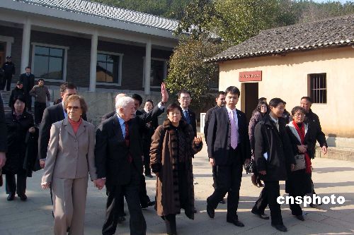 一月十四日,美國(guó)前總統(tǒng)吉米·卡特夫婦一行七人抵達(dá)武漢,并赴前中國(guó)國(guó)家主席李先念的故鄉(xiāng)湖北紅安縣參觀訪問(wèn)。中國(guó)對(duì)外友協(xié)副會(huì)長(zhǎng)李小林、湖北省副省長(zhǎng)田承忠等陪同參訪。中新社發(fā) 艾啟平 攝
