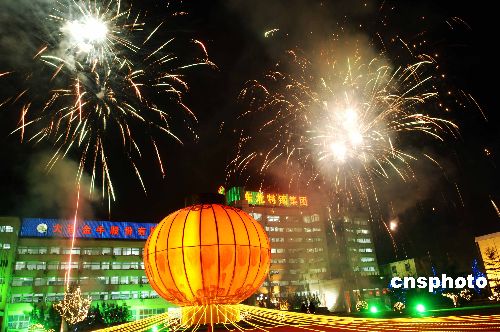1月25日除夕夜,東北特鋼集團大連基地廣場五彩繽紛禮花綻放空中,迎接牛年到來。當晚,大連市大街小巷爆竹聲聲,人們在絢爛的煙花中迎來2009農(nóng)歷新年。中新社發(fā) 劉德斌 攝
