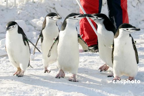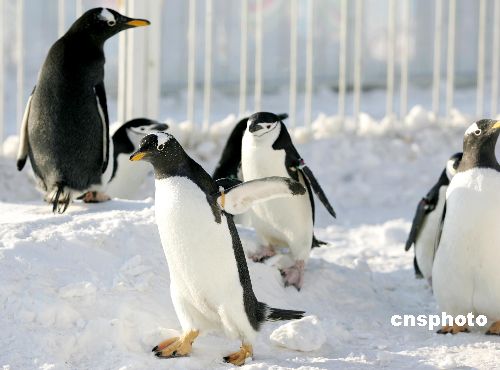 1月26日大年初一,占地1.5萬平方米的大型雪場在奧林匹克森林公園建成并正式投入使用。從初一到正月十五,奧林匹克森林公園將舉辦以“和企鵝一起去戲雪”為主題的雪上嘉年華,市民不僅可以在這里打雪仗、滾雪球,還可以跟10只可愛的小企鵝來一次親密接觸。10只可愛的小企鵝來自青島極地海洋世界,活動(dòng)期間它們將在特別制作的企鵝小屋為游客表演助陣,游客和這些快樂的小精靈屆時(shí)可以近距離接觸、合影留念。中新社發(fā) 富田 攝