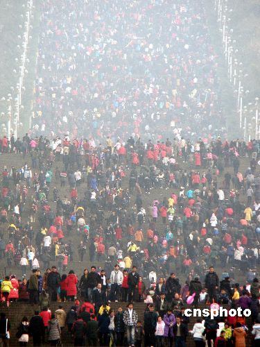 1月26日,重慶市云陽新縣城3萬多市民結(jié)伴登臨磐石城,訪古跡、看新城、賞平湖,以戶外健身活動的方式迎接新年。春節(jié)期間,三峽庫區(qū)的移民大縣云陽天氣晴朗,市民們紛紛走出戶外,廣場、公園、張飛廟、磐石城等風(fēng)景區(qū)處處洋溢節(jié)日氣氛,大量游客和市民群眾在休閑中以各種不同方式歡快過節(jié)。中新社發(fā) 饒國君 攝