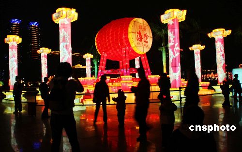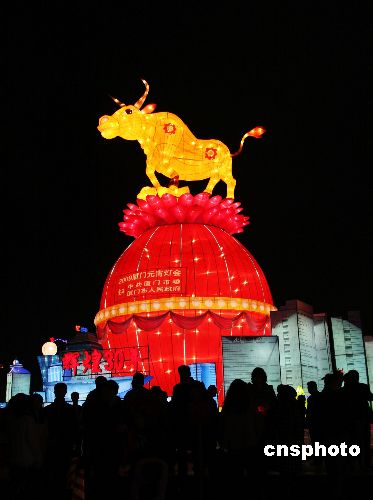 2009年1月28日,廈門元宵燈會(huì)在白鷺洲西公園璀璨亮燈,80組傳統(tǒng)工藝與現(xiàn)代科技完美結(jié)合的彩燈燈組齊亮相,讓廈門市民和各地游客充分感受了新年的喜慶與祥和氣氛。據(jù)悉,燈會(huì)將一直亮燈到2月12日(正月十八)。中新社發(fā) 陳地長 攝