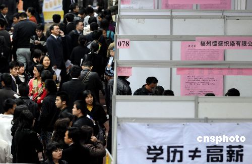 二月三日,福州舉辦春節(jié)后首場針對大中專畢業(yè)生的招聘會,一展位前掛起了“學歷不等于高薪”的橫幅。就業(yè)市場中,實踐經(jīng)驗、社會交際等能力開始成為各用人單位考察畢業(yè)生的重要要求。中新社發(fā) 王東明 攝