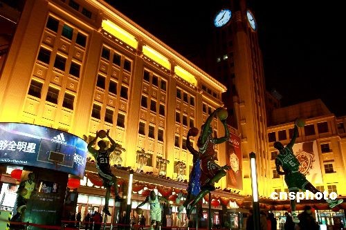 2月6日晚,“NBA全明星”現(xiàn)身北京王府井大街,吸引不少市民的目光。隨著元宵節(jié)、情人節(jié)的臨近,北京各大商家已開(kāi)始布置門(mén)面,節(jié)日商戰(zhàn)悄然打響。中新社發(fā) 鄭雄增 攝