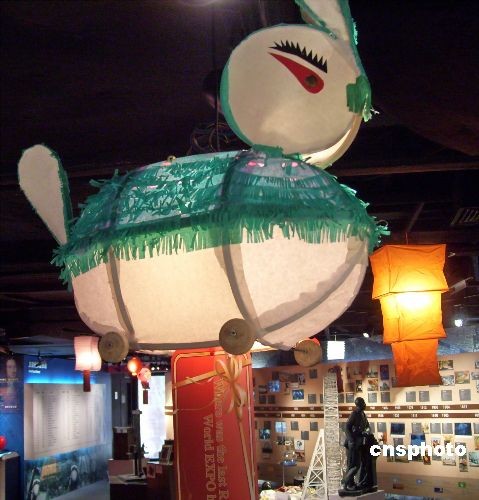 2月10日,上海世博會展示中心內(nèi),澳門館“玉兔宮燈”安放在“中國館”旁,世博會期間,“玉兔宮燈”和“中國館”將共迎八方來賓。中新社發(fā) 井韋 攝