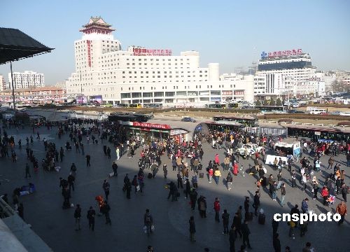 2009年2月11日,北京西站廣場(chǎng)旅客如織,再次迎來春運(yùn)客流高峰。據(jù)悉,此次客流高峰的旅客主要是返城民工及返校學(xué)生。 中新社發(fā) 玉龍 攝
