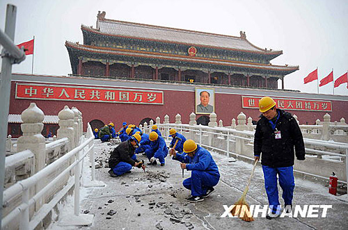 天安門外金水橋保護(hù)修繕工程于2月18日正式開工。本次工程主要是對天安門南側(cè)的外金水橋進(jìn)行修繕,涉及橋面的修補(bǔ)面積約為327.69 ㎡,主要修繕內(nèi)容是對金水橋中心主橋(御路橋)的橋面加鋪保護(hù)性棧道,避免今后參觀游人對橋面造成損傷。本次修繕過程中并不會完全封閉施工,具體情況會根據(jù)施工需要采取臨時(shí)性措施,以方便游人。工程預(yù)計(jì)2009年5月1日竣工。財(cái)政撥款投資預(yù)算為94.64萬元。