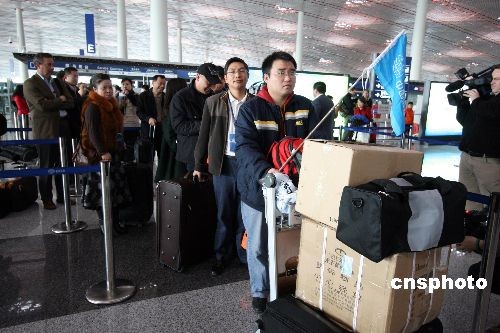 中國(guó)首個(gè)赴美購(gòu)房團(tuán)于2月24日在首都機(jī)場(chǎng)乘坐13點(diǎn)40分的國(guó)際航班啟程赴美。登機(jī)前,赴美購(gòu)房團(tuán)舉行了簡(jiǎn)單的出發(fā)儀式。赴美購(gòu)房團(tuán)登機(jī)前,搜房網(wǎng)對(duì)團(tuán)員進(jìn)行了問(wèn)卷調(diào)查,結(jié)果顯示,在計(jì)劃行程中的五個(gè)美國(guó)城市中,紐約以36.84%的高支持率成為最受關(guān)注的城市,接下來(lái)依次為洛杉磯、舊金山、波士頓和拉斯維加斯。中新社發(fā) 王昊 攝