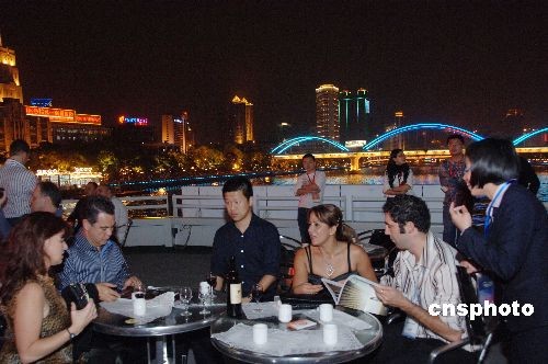正在廣州舉行的廣州家具博覽會(huì)組委會(huì),3月18日晚在“ 珠江夜游”的游艇上舉行了“全球買家之夜”聯(lián)誼活動(dòng),近年,“珠江夜游”已成為廣州旅游熱線,不少商家和機(jī)構(gòu)都將聯(lián)誼及商務(wù)活動(dòng)安排在游艇上舉辦,令客人在欣賞珠江兩岸夜景之時(shí)亦可增進(jìn)相互之間的友誼。中新社發(fā) 梁永強(qiáng) 攝