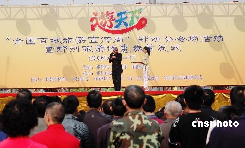 圖為4月11日上午9點(diǎn),數(shù)萬(wàn)鄭州市民爭(zhēng)領(lǐng)旅游優(yōu)惠券。據(jù)悉,國(guó)家旅游局于4月11日至17日在全國(guó)186個(gè)城市開(kāi)展“全國(guó)百城旅游宣傳周”活動(dòng),3個(gè)月內(nèi)鄭州將發(fā)放100萬(wàn)份總價(jià)值達(dá)值30億元的旅游優(yōu)惠券,每套券面優(yōu)惠達(dá)3000元。中新社發(fā) 賈建偉 攝
