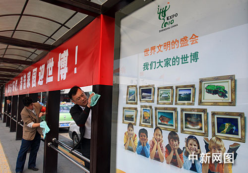 在虹橋機(jī)場(chǎng)候機(jī)樓前廣場(chǎng),志愿者們擼袖揮汗,認(rèn)真清掃地面、擦拭圍欄,以擦亮城市窗口;在虹橋機(jī)場(chǎng)925公交車站、第一停車場(chǎng)等區(qū)域,60多名南京路上好八連戰(zhàn)士以及武警部隊(duì)官兵不認(rèn)真進(jìn)行衛(wèi)生死角整治行動(dòng);而在虹橋機(jī)場(chǎng)第二停車場(chǎng),身著綠色志愿者馬甲的義務(wù)監(jiān)督員向過往旅客和路人進(jìn)行環(huán)境衛(wèi)生宣傳教育,勸阻和制止亂扔垃圾雜物的不文明行為。