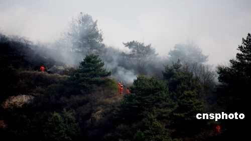 2009年4月17日下午,山西省盂縣上社鎮(zhèn)磨盤村磨盤山發(fā)生森林火災(zāi),因風(fēng)力過大,大火肆虐,整個森林煙霧彌漫。森林火災(zāi)發(fā)生后,盂縣人民政府和當(dāng)?shù)赜嘘P(guān)部門調(diào)集力量迅速到現(xiàn)場。經(jīng)過緊急撲救,截止下午5時30分火情已基本得到控制,暫無人員傷亡。目前,起火原因正在調(diào)查中。中新社發(fā) 程瑜