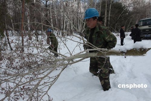 4月23日,當(dāng)牡丹江市電業(yè)搶修人員將三道林場內(nèi)最后一處電線桿上的刀閘閉合,7000多戶因暴雪導(dǎo)致斷電的人家,終于重新恢復(fù)正常的生產(chǎn)生活。 4月21日,黑龍江省牡丹江市出現(xiàn)雨夾雪天氣,其中牡丹江市三道林場的局部林區(qū)因當(dāng)?shù)亍靶夂颉庇绊懺馐鼙┭┮u擊,最深處的積雪厚度達(dá)到1米以上,林區(qū)內(nèi)的一些林木被大雪壓斷,通過林區(qū)內(nèi)的部分供電線路短路。從4月21日至4月23日,牡丹江市電業(yè)系統(tǒng)出動100多名搶修人員奮戰(zhàn)在40多公里的林區(qū)供電線路上,及時排除短路故障及線路險情。直到4月23日下午1點(diǎn)30分,各個停電村屯才陸續(xù)恢復(fù)供電。中新社發(fā) 莊文斌 攝