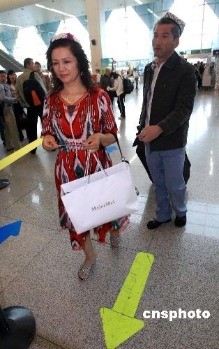 5月9日,新疆172名旅客從烏魯木齊地窩堡國(guó)際機(jī)場(chǎng)乘坐飛機(jī)前往上海,經(jīng)由上海乘坐游輪前往寶島臺(tái)灣旅游觀光。該旅行團(tuán)將游覽臺(tái)北故宮、基隆夜市、太魯閣、日月潭、中臺(tái)禪寺等臺(tái)灣著名旅游景點(diǎn)。團(tuán)中數(shù)名維吾爾族游客表示,希望借此機(jī)會(huì)向臺(tái)灣同胞介紹美麗富饒的新疆,加深兩地少數(shù)民族文化的交流。中新社發(fā) 劉新 攝
