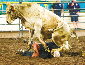 據(jù)英國(guó)《太陽(yáng)報(bào)》、《每日鏡報(bào)》7月7日?qǐng)?bào)道,日前美國(guó)加利福尼亞州一年一度的放牧人競(jìng)技會(huì)在加州圣迭戈舉行。與往年一樣,騎公牛表演仍是競(jìng)技會(huì)上最激動(dòng)人心的表演。不過(guò),今年的騎公牛表演卻發(fā)生意外一幕,一頭狂躁的公牛把一名年邁的騎手掀翻在地,飛蹄狂踩,所幸在工作人員幫助下這名騎手只是輕微受傷。