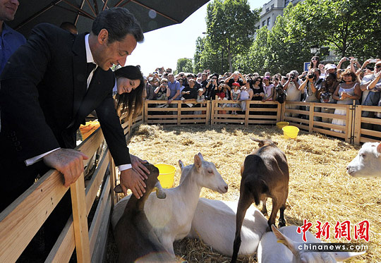 5月24日,法國(guó)巴黎,法國(guó)總統(tǒng)薩科齊和妻子卡拉·布呂尼參觀巴黎“自然首都”展。