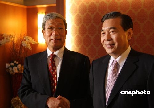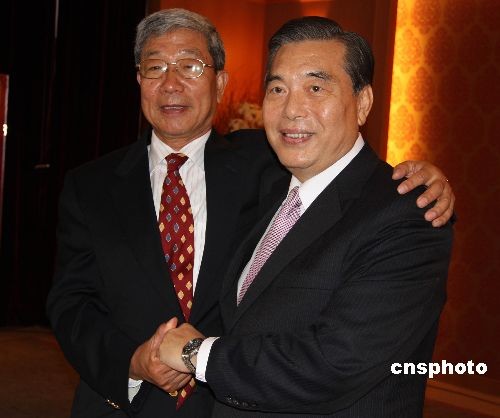 大陸海峽兩岸經(jīng)貿(mào)交流協(xié)會(huì)會(huì)長(zhǎng)李水林率領(lǐng)“兩岸經(jīng)貿(mào)促進(jìn)考察團(tuán)”到臺(tái)灣進(jìn)行采購(gòu)。圖為6月1日,李水林(左)與臺(tái)灣外貿(mào)協(xié)會(huì)董事長(zhǎng)王志剛(右)共同接受采訪。李水林說(shuō):“我們是多年的好朋友、好兄弟。我長(zhǎng)兩歲,稱大哥,志剛小兩歲,稱老弟。我們喝酒,志剛要先喝兩杯!敝行律绨l(fā) 耿軍 攝