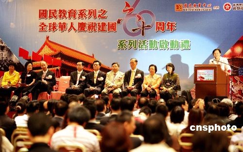 七月四日,中央政府駐港聯(lián)絡(luò)辦公室副主任李剛、外交部駐港特派員公署副特派員楊子剛等嘉賓在香港九龍灣國(guó)際展貿(mào)中心參觀“建國(guó)六十周年圖片展”。當(dāng)日,由香港國(guó)民教育中心舉辦的“全球華人慶祝建國(guó)六十周年”系列活動(dòng)舉行啟動(dòng)禮,活動(dòng)旨在向市民加強(qiáng)國(guó)民教育,並透過(guò)媒體領(lǐng)域以增強(qiáng)學(xué)生的國(guó)家觀念和民族意識(shí)。中新社發(fā) 洪少葵 攝