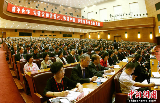 5月7日,由中國國務(wù)院僑辦和中國海外交流協(xié)會共同主辦的“第五屆世界華僑華人社團聯(lián)誼大會”在北京舉行,大會以“維護中國統(tǒng)一——新疆、西藏的歷史與現(xiàn)狀”為主題,來自世界五大洲近120個國家和地區(qū)有影響力和代表性的華僑華人社團負(fù)責(zé)人及國內(nèi)相關(guān)部門負(fù)責(zé)人約600人與會。中新社發(fā) 杜洋 攝
