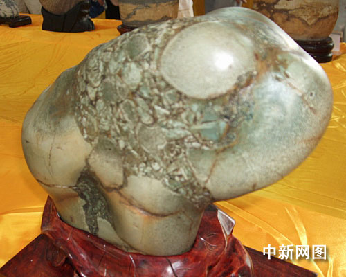 中新網(wǎng)宜賓7月7日電(邱萍)7日,在四川宜賓縣第二屆奇石展會(huì)場(chǎng),數(shù)百名觀眾圍著一枚形似青蛙的石頭稱奇贊嘆。晶瑩剔透的石頭上,長(zhǎng)出兩個(gè)圓鼓鼓的眼睛,似一只青蛙蹲在地上,人們觀后無不驚嘆大自然的鬼斧神工。