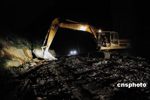 6月7日,大型救援設(shè)備駛?cè)胫貞c武隆山體垮塌現(xiàn)場。從6月6日17點(diǎn)開始,重慶市交委從渝湘高速公路建設(shè)工地調(diào)集了150余名技術(shù)骨干和20臺(tái)挖掘機(jī)、裝載機(jī)、壓路機(jī)、大型貨車,抽調(diào)武隆交通部門和沿線市民150余人及25臺(tái)大型機(jī)械設(shè)備對(duì)通往鐵礦鄉(xiāng)的28公里救援通道進(jìn)行搶修。中新社發(fā) 劉確樹 攝
