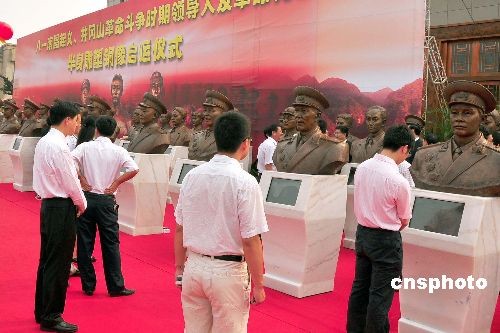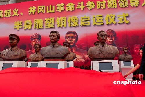 6月23日,參加過(guò)八一南昌起義、井岡山革命斗爭(zhēng)時(shí)期領(lǐng)導(dǎo)人及革命先烈半身雕塑銅像啟運(yùn)儀式在南昌隆重舉行。這批近百尊半身雕塑銅像是來(lái)自中國(guó)各地的雕塑家花了半年時(shí)間,查閱參考了200多萬(wàn)文字材料和1500多張圖片,精心創(chuàng)作完成的。這批半身雕塑銅像,將安放在八一起義南昌紀(jì)念館和井岡山革命博物館供人們長(zhǎng)期瞻仰。中新社發(fā) 段長(zhǎng)征 攝